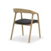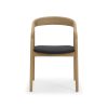 Celeste kombiniert massive Eiche mit einer fließenden Silhouette und einem Sitz in schwarzem Kunstleder. Die integrierten Armlehnen unterstützen entspanntes Sitzen; das matte Finish betont die Maserung und ist pflegeleicht.