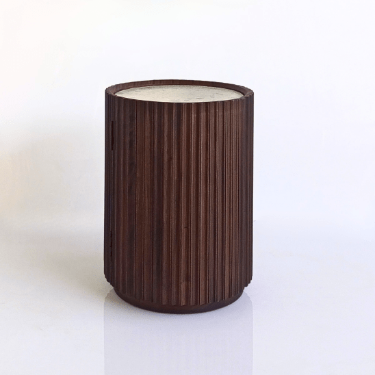 Der Beistelltisch Franz aus edlem Nussbaumholz verbindet warme Eleganz mit funktionalem Design. Die runde Form und die Kombination aus massivem Nussbaum und einer stilvollen weißen Steinplatte verleihen dem Möbelstück eine hochwertige und zugleich moderne Ausstrahlung. Ob als Beistelltisch im Wohnzimmer oder als Nachttisch im Schlafzimmer – Franz fügt sich mühelos in unterschiedliche Wohnkonzepte ein.