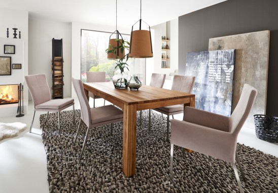 Der Esstisch ist von zwei Seiten erweiterbar und kann mit zwei Erweiterungsplatten um insgesamt 1 m verlängert werden.