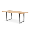 Der Theo Esstisch ist ein moderner Esstisch aus Eichenholz, der durch zwei stilvolle U-förmige Beine charakterisiert ist. Der Tisch ist aus einheitlichem Holz gefertigt, ohne größere Knoten oder Risse in der Tischplatte. Der Esstisch kann an den Enden mit bis zu zwei Verlängerungen erweitert werden – diese sind separat erhältlich.