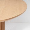 Der Esstisch Franz in runder Ausführung verbindet eine weiche, einladende Form mit einem ausdrucksstarken Design. Charakteristisch ist das luftige Tischbein aus vertikalen Holzrippen, das dem Tisch eine skulpturale Leichtigkeit verleiht und gleichzeitig für Stabilität sorgt. Die sanft auslaufende Tischplatte unterstreicht die feine Linienführung und schafft eine harmonische, hochwertige Gesamtoptik.