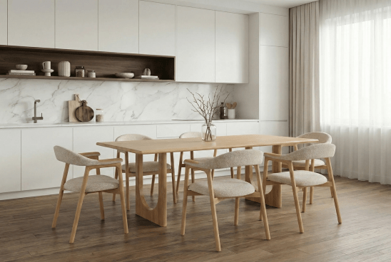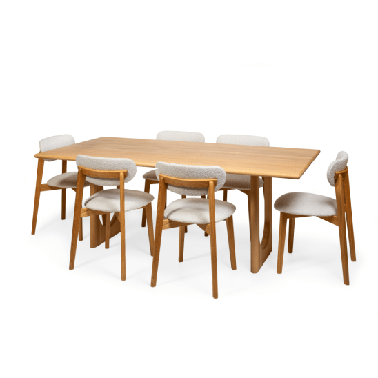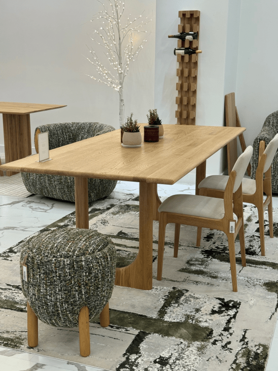 Der Esstisch Theo ist ein moderner Massivholz-Esstisch aus 100 % europäischer Eiche, der durch seine zwei markanten, U-förmigen Tischbeine ein klares und zeitgemäßes Erscheinungsbild erhält. Die geradlinige Konstruktion sorgt für Stabilität und unterstreicht den architektonischen Charakter des Designs.