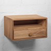 Ein moderner schwebender Nachttisch mit offenem Stauraum und einer Schublade ist eine großartige Lösung für die meisten Schlafzimmer. Funktionale Schublade, um Ihre Sachen versteckt und bei Bedarf erreichbar aufzubewahren. Offenes Regal, um Ihre Lieblingsbücher zu verstauen und zusätzlichen Stauraum zu haben. Dieses Produkt ist aus massivem europäischem Eichenholz gefertigt. Es zeichnet sich durch die Schönheit der natürlichen Holzmaserung aus.