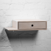 Schlichtes, modernes Design für einen minimalistischen Touch in Ihrem Zuhause. Hergestellt in Europa. Funktionale kleine Schublade und Ablage. Fingerloch in der Schublade für einfaches Öffnen.