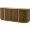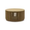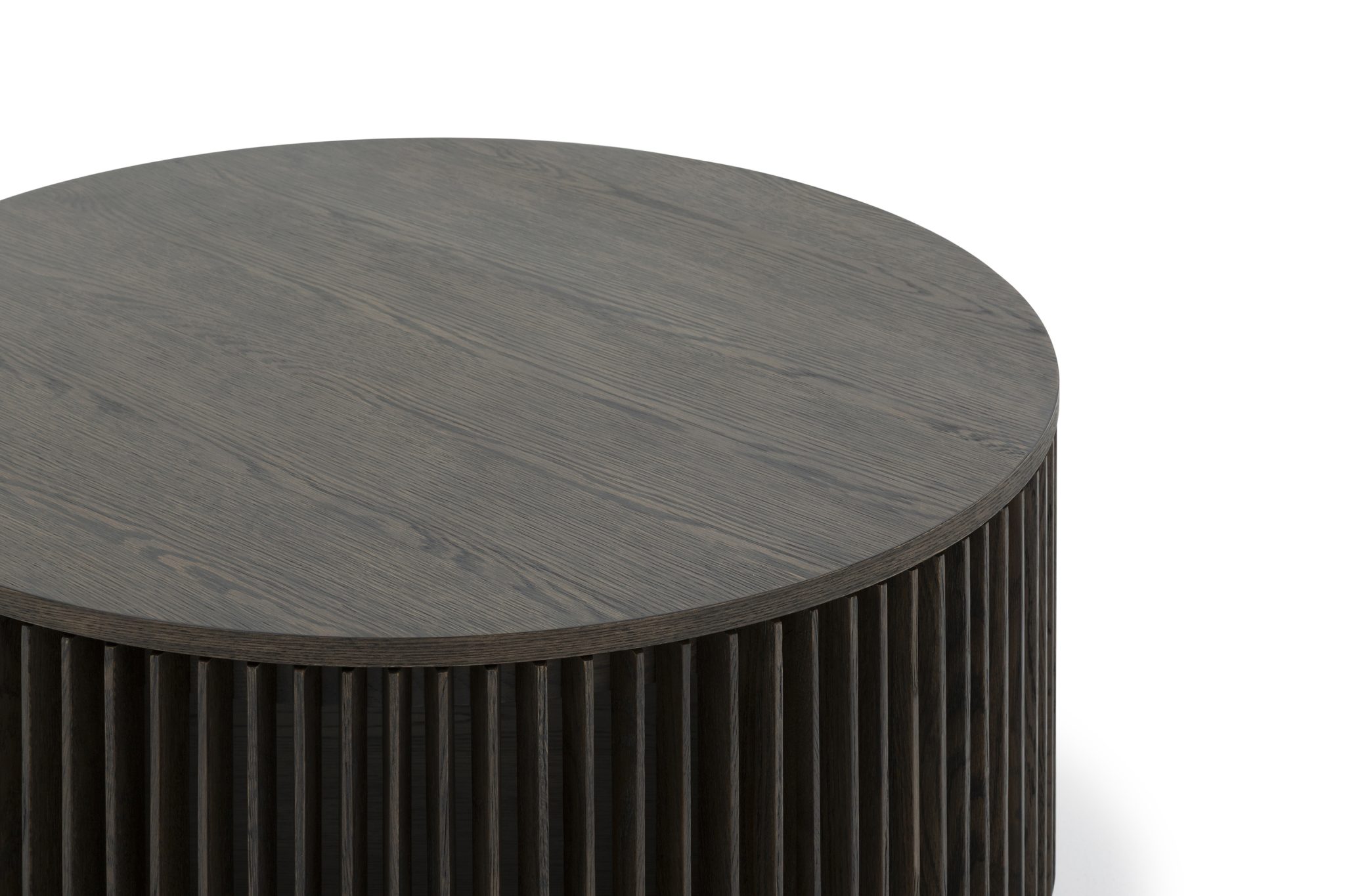 Der lamellenartige Vollholzfuß verleiht dem Tisch Leichtigkeit und Struktur. Die abnehmbare Tischplatte eröffnet darunter ein großzügiges, verdecktes Staufach – ideal für Fernbedienungen, Magazine oder Accessoires. Präzise Fugen, fein gearbeitete Kanten und ausgewogene Proportionen gewährleisten eine wertige Haptik und dauerhafte Nutzung.