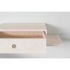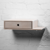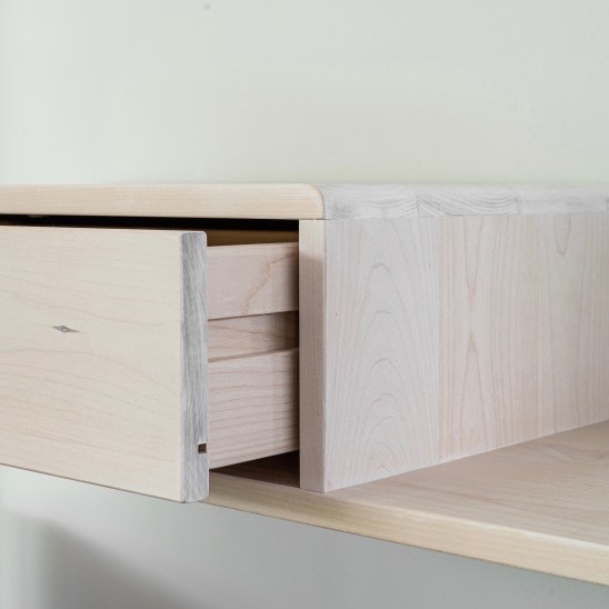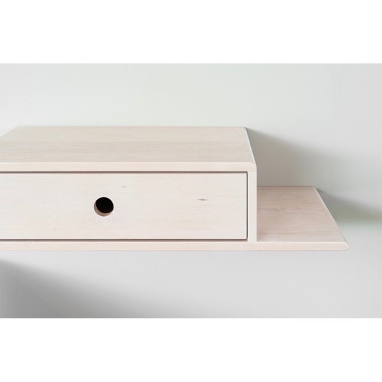 Der moderne schwebende Nachttisch mit einer Schublade und einer zusätzlichen Ablage auf der rechten Seite ist eine hervorragende Lösung für die meisten Schlafzimmer. Die funktionale Schublade ermöglicht es Ihnen, persönliche Gegenstände diskret zu verstauen und bei Bedarf griffbereit zu haben. Die offene Ablage bietet ausreichend Platz für Ihre Lieblingsbücher und schafft zusätzlichen Stauraum. Hergestellt aus massiver europäischer Birke zeigt das Produkt die natürliche Maserung des Holzes.
