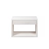 Unser Nachttisch Hugo, aus fein gearbeiteter weißer Birke, verkörpert einen klaren und minimalistischen Stil, der die natürliche Maserung des Holzes zur Geltung bringt. Dieser moderne Nachttisch verfügt über eine praktische einzelne Holzschublade und bietet eine zusätzliche Ablagefläche für Ihre Lieblingsbücher. Dank seiner kompakten und funktionalen Bauweise kann er entweder als freistehendes Möbelstück oder als schwebendes Wandregal verwendet werden, und er passt nicht nur perfekt ins Schlafzimmer, sondern fügt sich auch harmonisch in jeden Raum Ihres Hauses ein.