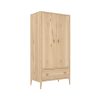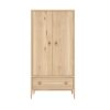 Der Kleiderschrank Elin verbindet massives Eichenholz mit einem eleganten Retro-Touch und schafft strukturierte Ordnung im Schlafzimmer.