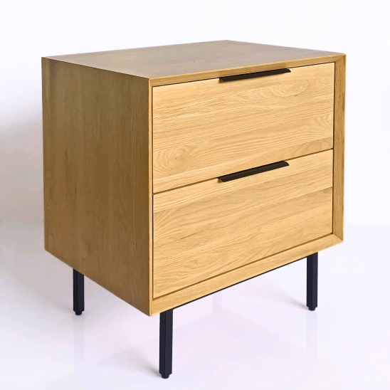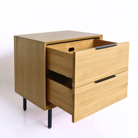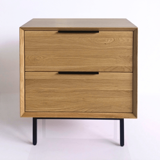 Der Nachttisch Bergen verbindet skandinavische Schlichtheit mit hochwertiger Handwerkskunst. Gefertigt aus 100% massiver Eiche (ohne Fingerzinken) und mit einer matten Lackierung veredelt, betont er die natürliche Schönheit des Holzes. Die zwei großzügigen Schubladen mit Soft-Close-Metallschienen bieten viel Stauraum und ermöglichen ein leises, komfortables Öffnen und Schließen. Mit klaren Linien und zeitlosem Design ist Bergen eine langlebige und elegante Ergänzung für jedes Schlafzimmer.