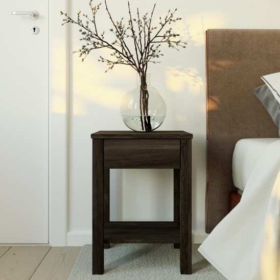 Erleben Sie den perfekten Mix aus Funktionalität und Design mit unserem Nachtschrank. Dieser formschöne Ablagetisch aus schwarzer Birke fügt sich mühelos in jede Schlafzimmerdekoration ein und strahlt dabei eine warme, gemütliche Atmosphäre aus. Egal, ob Sie ihn als Nachtkästchen für Ihre Lieblingslektüre und Ihren Wecker oder als Beistelltisch für eine stilvolle Lampe nutzen wollen – TOMMY ist immer die richtige Wahl.