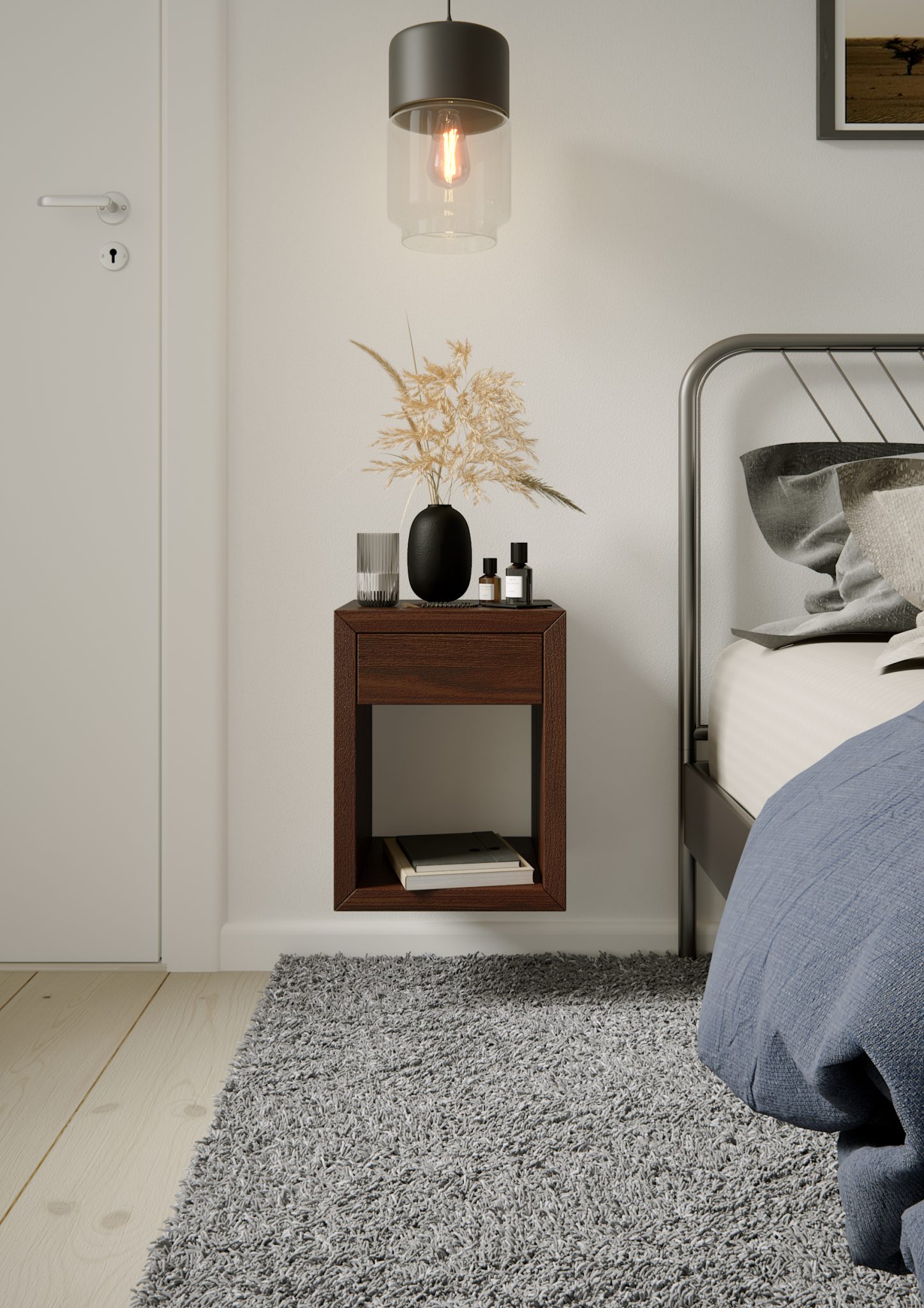 Mit den praktischen Maßen von H 39 cm x B 30 cm x T 30 cm bieten diese Nachttische vielseitige Platzierungsmöglichkeiten. Die inneren Schubladenmaße von H 6 cm x B 21,5 cm x T 22,5 cm bieten ausreichend Platz, um persönliche Gegenstände diskret zu verstauen. Ob Sie sich für eine bodenstehende Einheit entscheiden oder eine Wandmontage bevorzugen, diese Nachttische passen sich nahtlos Ihren Vorlieben und Platzbeschränkungen an.