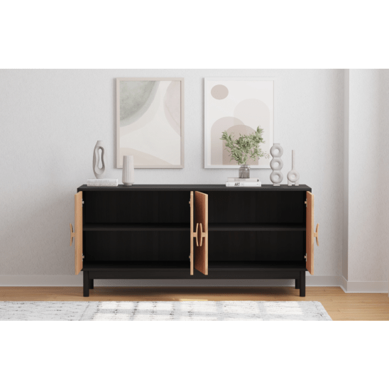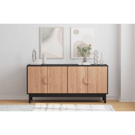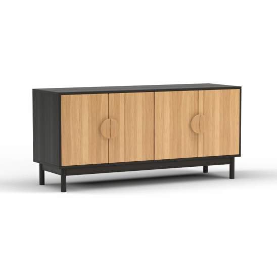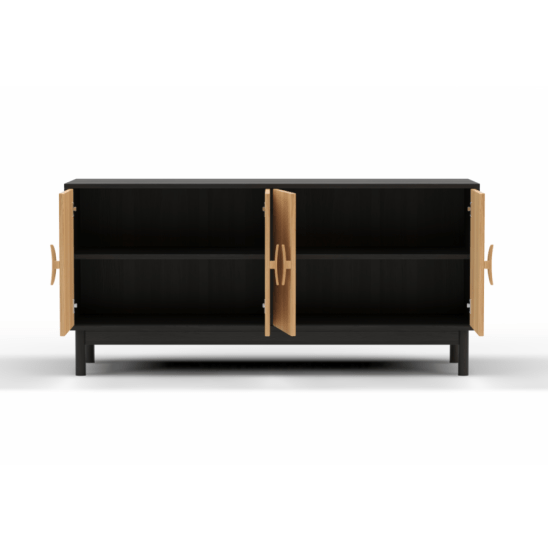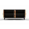 Dieses Sideboard wird sorgfältig aus langen Holzplatten gefertigt, die für ihre überragende Qualität bekannt sind und als Spitzenprodukte im Bereich der Holzmaterialien gelten. Wir verzichten auf die Verwendung von fingergezinktem Holz und setzen stattdessen auf Massivholzkonstruktionen, um die lang anhaltende Schönheit und höchste Qualität unserer Produkte zu gewährleisten.
