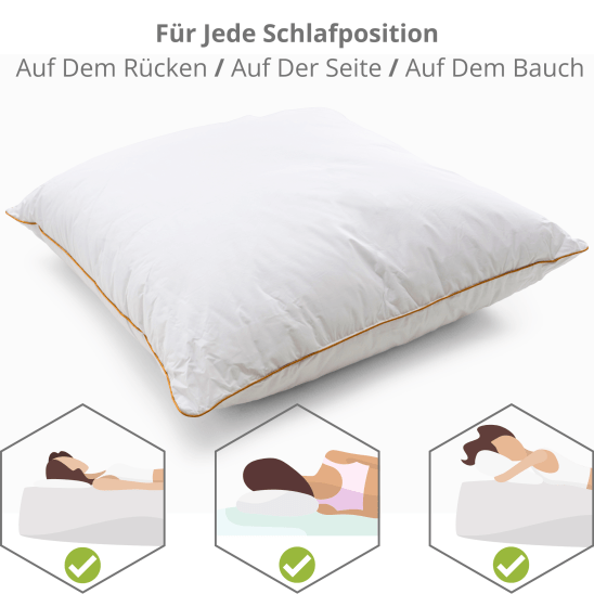 Egal, ob Sommer oder Winter, dieses Kissen ist für die ganzjährige Nutzung konzipiert. Es hält ein perfektes Gleichgewicht zwischen Wärme und Atmungsaktivität, sodass Sie das ganze Jahr über höchsten Komfort genießen können. Der Mikrofaserbezug ist feuchtigkeitsableitend und sorgt dafür, dass Sie die ganze Nacht über kühl und trocken bleiben, indem er Feuchtigkeit effektiv vom Körper wegtransportiert.