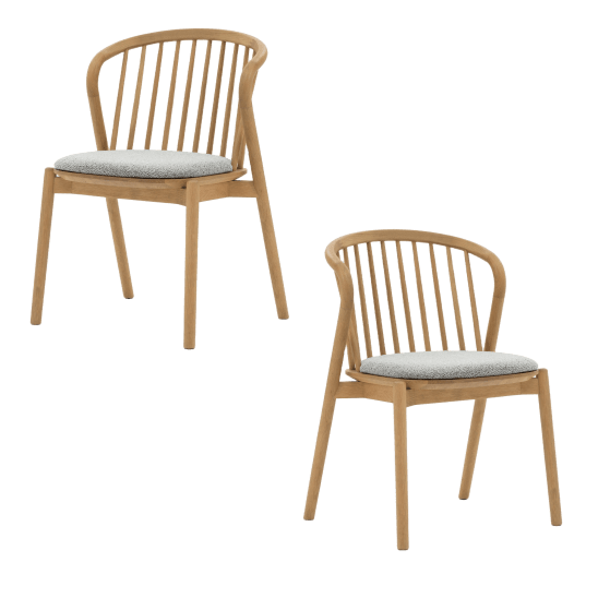 Das SAGA Stuhl-Set besteht aus 2 eleganten SAGA Stühlen aus massiver Eiche natur und 2 passenden Sitzkissen im Stoff NOEL 004. Diese Kombination vereint zeitloses Design, Natürlichkeit und höchsten Sitzkomfort – perfekt für moderne Esszimmer.
