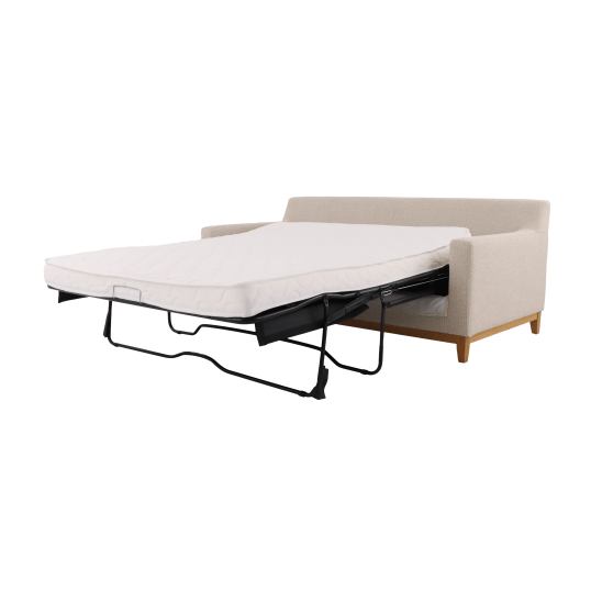 Die sachliche Linienführung erleichtert die Integration in verschiedene Wohnstile. Das Sofa verwandelt sich bei Bedarf schnell in eine Schlafgelegenheit; im Alltag bleibt die Silhouette aufgeräumt. Der beige Bezug lässt sich vielseitig mit Holz, Naturtönen und Texturen kombinieren.