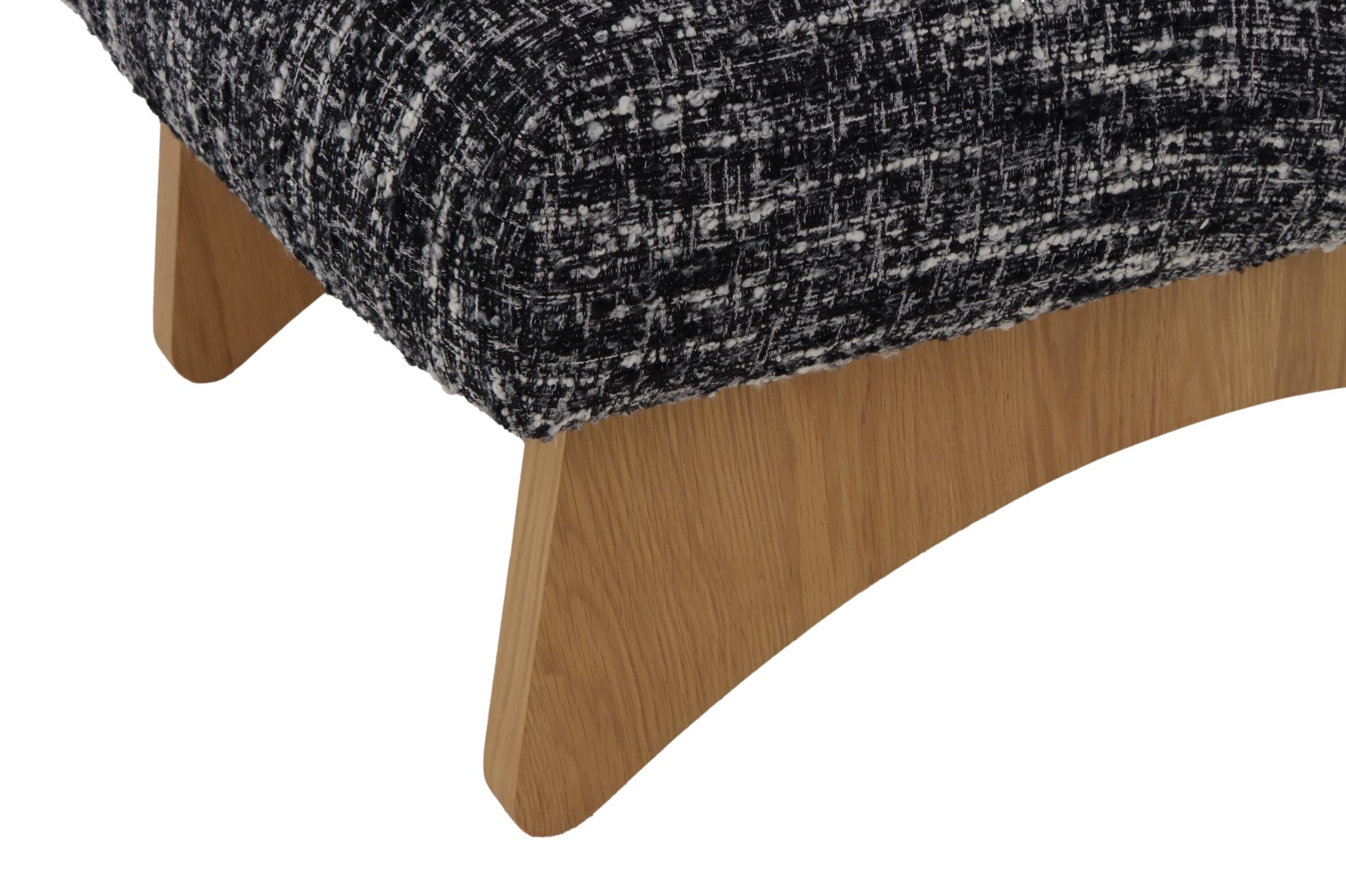 Der schwarz-weiße Stoff setzt ein Statement, lässt sich aber mit neutralen Tönen ebenso kombinieren wie mit farbigen Akzenten. Abgerundete Armlehnen und die großzügige Sitztiefe sorgen für hohen Komfort beim Lesen, Serieschauen oder Entspannen. Die leicht ausgestellten Füße garantieren Standfestigkeit und erleichtern die Reinigung des Bodens.