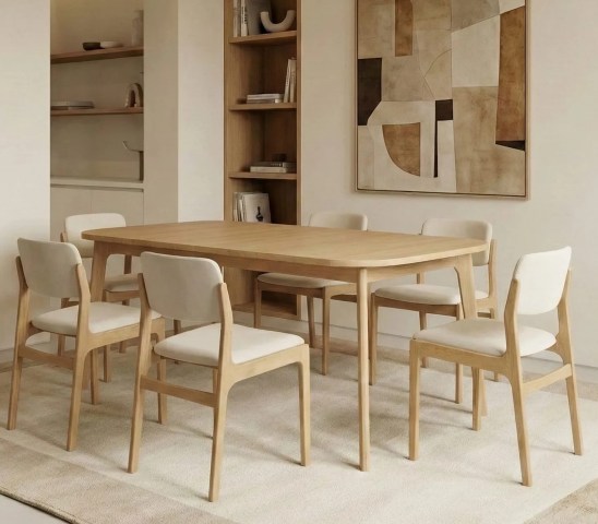Stuhl OSLO 2er-Set aus massiver Eiche, Esszimmerstuhl mit beigem Stoffbezug (Stoff Cobble 110) | Woodek Design