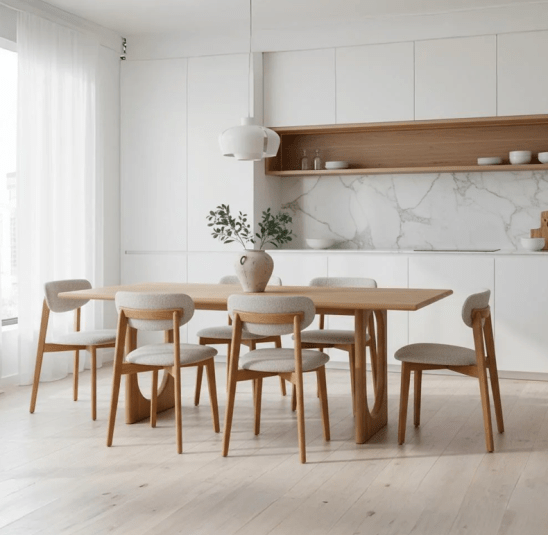 Ruhig, wertig, kombinierbar – Theo begleitet den Alltag am Tisch mit Komfort und Klarheit.
