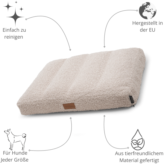 In der EU gefertigt, steht die Teddy-Matratze für höchste Qualität und Langlebigkeit. Schenken Sie Ihrem Hund den besten Schlafkomfort.