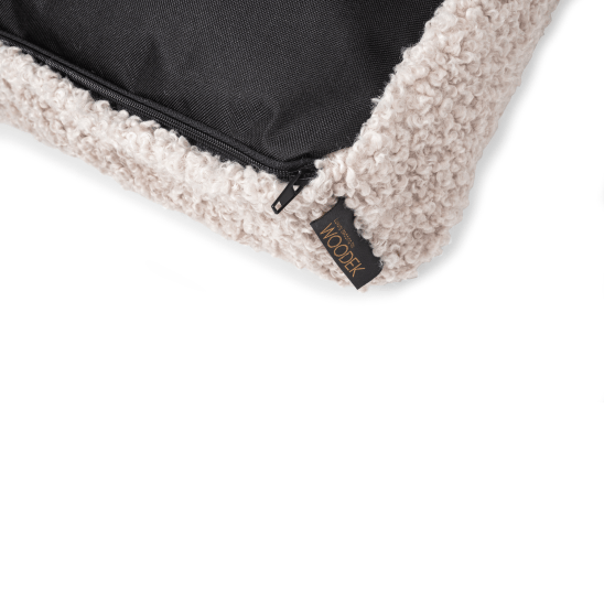 Teddy Ergonomische Hundematratze von Woodek Design – ein luxuriöses Hundebett, das Stil, Komfort und Langlebigkeit vereint. Diese XL-Matratze aus weichem, abnehmbarem beigen Stoff ist ideal für Hundebesitzer, die sowohl Ästhetik als auch Funktionalität schätzen.