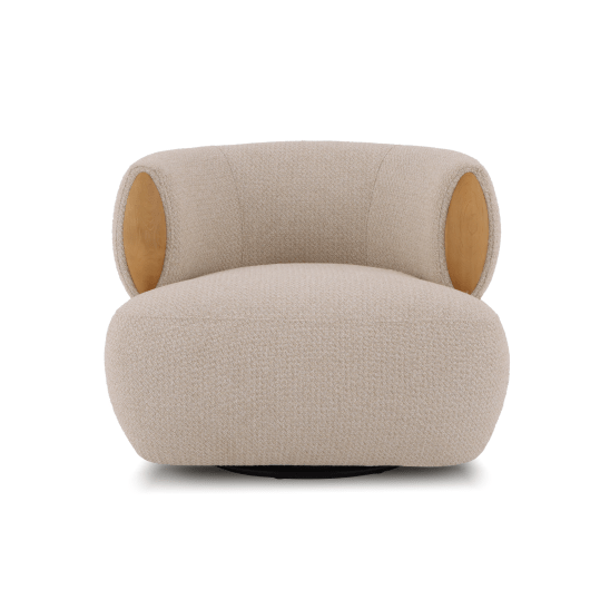 Die weich gerundete Sitzschale umschließt Rücken und Schultern, ohne wuchtig zu wirken. Dank der 360°-Drehfunktion richtet sich Theo mühelos zum Gespräch, zum Fenster oder zum Fernseher aus. Dezente Steppnähte und der schmale Sockel betonen die moderne Linienführung, während die naturbelassene Holzoberfläche Wärme ausstrahlt. Kombiniert mit einem Beistelltisch oder einem Pouf wird der Sessel zum flexiblen Zentrum Ihrer Wohnlandschaft.