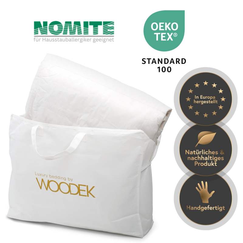 Gönnen Sie sich die Woodek Luxus-Bettdecke und erleben Sie höchste Schlafqualität mit natürlichen Materialien, durchdachter Verarbeitung und nachhaltiger Langlebigkeit.