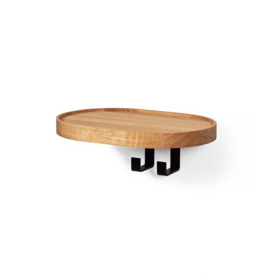 Diese vielseitige, wandmontierte Ablage mit Doppelhaken präsentiert sich als ideale Lösung für unterschiedlichste Anwendungen im gesamten Haus. Handgefertigt aus massivem Eichenholz mit sichtbarer Maserung, die wunderbar zur Geltung kommt. Die runde Ablage mit hochstehenden Kanten bietet nicht nur Stauraum, sondern auch zwei Metallhaken als praktische Aufhängemöglichkeit für Jacken, Schlüssel, Hundeleinen oder Bademäntel. Diese Ablage eignet sich perfekt für kleinere Räume, und die Kombination aus Holz und Metall ermöglicht eine leichte Anpassung an jeden Stil und jede Einrichtung.